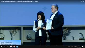 В номинации «Лучший учитель в освоении Универсальной библиотеки цифрового образовательного контента» вошла в число победителей заместитель директора Дарья Валерьевна Клычкова.